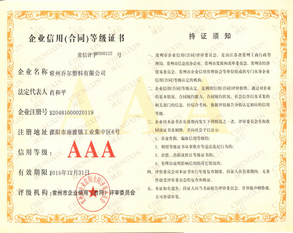 | 企業(yè)信用AAA級證書 |